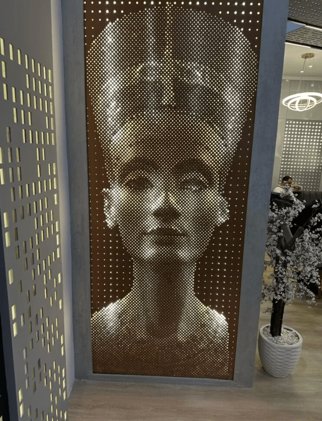 MetaLit is our state-of-the-art lighting system that integrates LED technology behind perforated metal sheets to create captivating ambient and indirect lighting. Designed to enhance any interior space, MetaLit offers both functional illumination and artistic expression. Whether you’re looking to create a warm, inviting atmosphere or a dynamic, modern environment, MetaLit provides endless customization options in pattern and light intensity. This innovative solution transforms ordinary spaces into extraordinary experiences, blending light and design seamlessly.