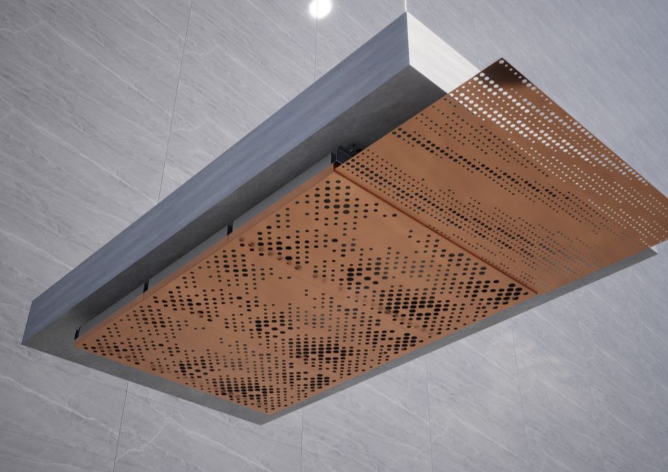 MetaSky is our innovative ceiling system designed to enhance any interior space with modern aesthetics and functionality. These ceiling tiles feature rapid installation with a click-in-place mechanism, improving acoustic properties while adding a sleek, contemporary finish. Customizable in size, pattern, and finish, MetaSky offers endless possibilities to match your vision. For added ambiance, MetaSky integrates seamlessly with MetaLit technology, transforming ceilings into illuminated design elements.